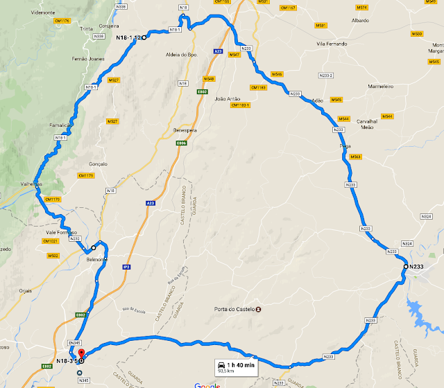 Caria, Belmonte, Valhelhas, Vale de Amoreira, Sameiro, Manteigas, Sameiro, Vale de Amoreira, Valhelhas, Belmonte, Caria - 70 Km.