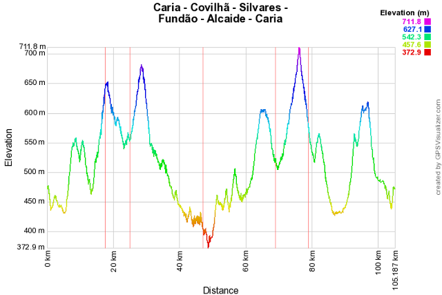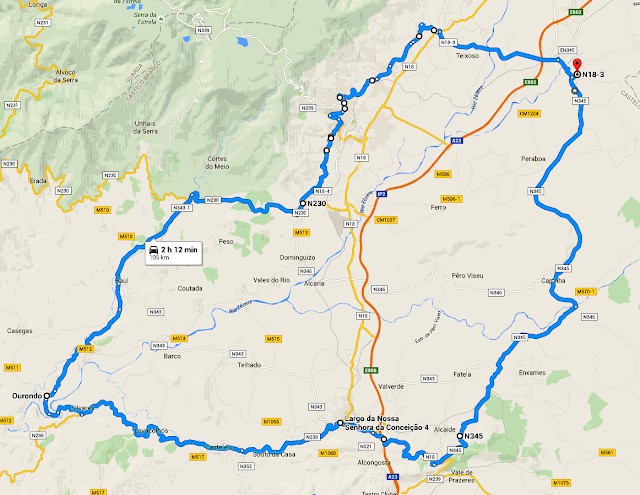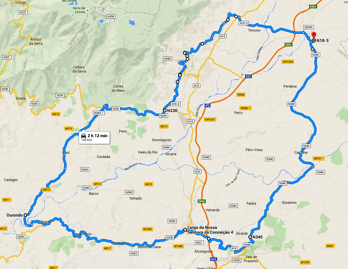 Caria, Belmonte, Valhelhas, Manteigas, Piornos, Penhas da Saúde, Covilhã, Canhoso, Teixoso, Caria - 81 Km.